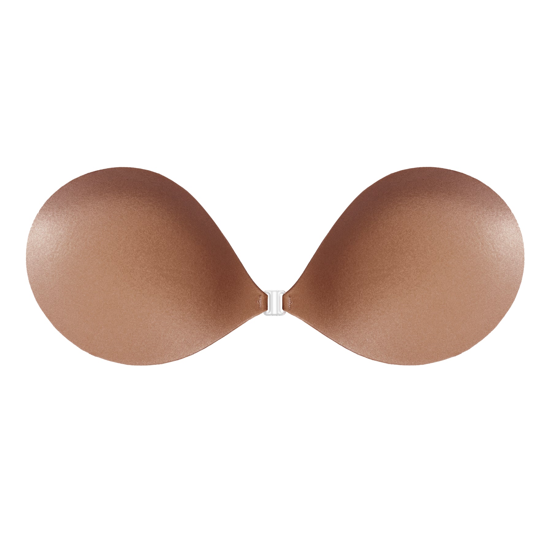 Connect the clasps and firmly press on both cups to secure your sticky bra in place.